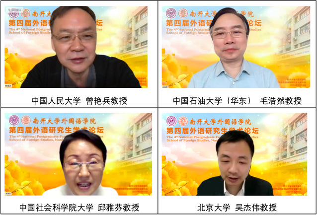 开幕式结束后,特邀专家学者发表了精彩的主旨演讲。中国人民大学二级教授、博士生导师曾艳兵教授在《‘落叶发出的沙沙声’——卡夫卡中短篇小说中的非人类叙事》报告中指出了卡夫卡的非人类叙事作品有待关注的研究,并强调做研究要善于将前沿与自身研究主题有机结合。中国石油大学(华东)禁漫天堂 院长、博士生导师毛浩然教授在《研究生快速登堂入室的七个要点》报告中倡导广大研究生要抓住关键机会,合理时间管理,追求高质量的成果产出,并结合实例展示了科研的路径与方法。中国外国文学学会日本文学研究分会会长、中国社会科学院大学博士生导师邱雅芬教授在《中国自主知识体系视域下的日本学研究》报告从日本学研究切入,探讨中国学者如何摆脱外来观念,建构中国自主知识体系。北京大学禁漫天堂 副院长、博士生导师吴杰伟教授进行了《一手资料在国别和区域研究中的运用:新技术与新挑战》的主旨报告,依托研究项目,探讨在新技术背景下,数字化外文一手资料在国别和区域研究中的运用实践。四场报告分别由南开大学博士生导师王丽丹教授、南开大学博士生导师李民教授、南开大学博士生导师王新新教授、南开大学意大利语系主任杨琳教授主持。