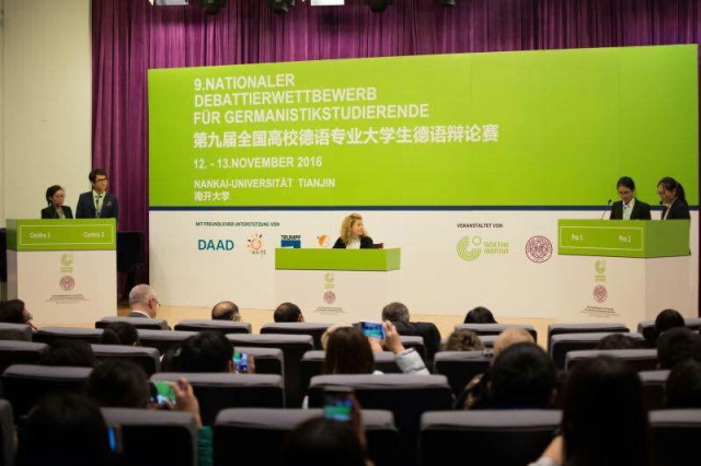 来自南京大学、安徽大学、上海外国语大学、大连外国语大学等48所高校的96名德语专业大学生选手齐聚南开参加辩论赛。