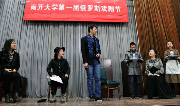 2014级俄语班从现代视角出发,颇有创意地演绎了类似于我国“小悦悦”事件的俄罗斯当代剧作家奥列格•博加耶夫的剧作《下行路》,直击俄罗斯社会的现实问题,揭露人心的善恶美丑,语言诙谐幽默,演技可谓精彩绝伦。各个年级的倾情表演引起现场观众的热烈反响,小礼堂内掌声雷动。南开大学首届俄罗斯戏剧节的桂冠由2014级俄语班摘得。