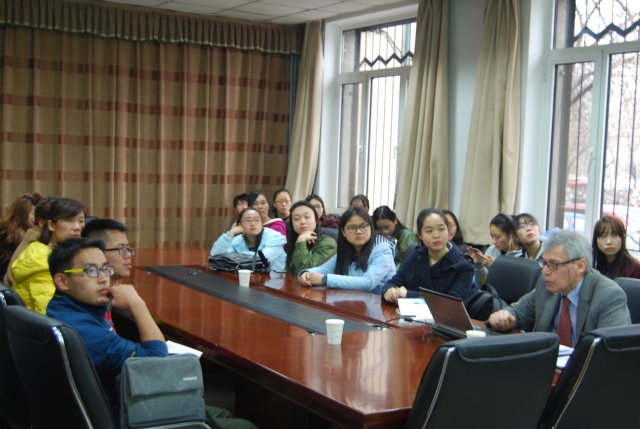 会见结束后。莫罗•莫雷蒂校长为外院师生做了题为“意大利当代历史大事记”的专题讲座,向师生介绍了意大利国家的发展历史。锡耶纳外国人大学毕业的博士生、佛罗伦萨孔子学院中文教师施安德介绍了到该校留学的有关情况。