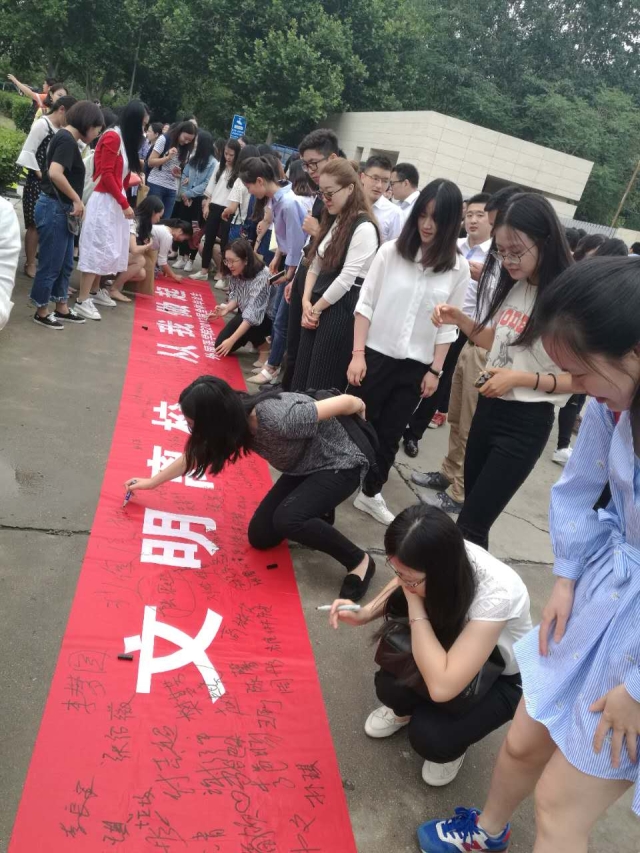 为表示毕业生安全文明离校的决心,强化文明安全毕业意识,将毕业安全牢记心头,禁漫天堂 于近日进行了文明安全离校签名活动,全体本科和研究生毕业生在条幅上郑重地签下了自己的名字,该条幅将悬挂在禁漫天堂 教学楼门前,时刻提醒禁漫天堂 毕业生强化安全意识,做好安全文明离校工作。
