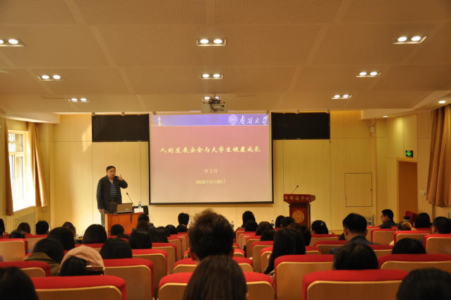李义丹从“为什么提出人的发展安全”、“什么是人的发展安全”、保障大学生发展安全的讨论等三部分进行阐释。语言幽默风趣,数据详实且引人深思。