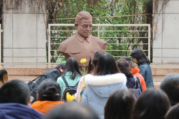 为了纪念穆旦诞辰一百周年,南开大学在开幕式前举行了“春临南开,怀我穆旦”穆旦塑像献花仪式。龚克、穆旦先生子女、与会专家学者等纷纷前往范孙楼东侧的穆旦花园,依次向坐落于此的穆旦塑像敬献鲜花,鞠躬致敬,缅怀这位爱国诗人不平凡的一生。
