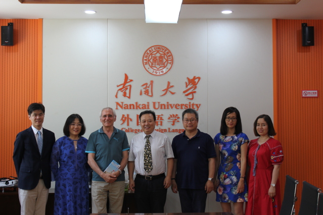 阎国栋院长代表学院全体师生热烈欢迎西奥·赫曼斯(Theo Hermans)教授再次来访南开,他对赫曼斯教授的学术成就表示衷心赞赏,并充分肯定了翻译学研究中心主任苗菊教授为学院的学术交流、人才培养等方面所做出的贡献。赫曼斯教授表示非常高兴再次来到南开;赫曼斯教授分享了自己在UCL的执教情况,并介绍了学生及年轻教师的交流、培训情况,表达了交流合作的意愿;此外,教授介绍了汉语言文化作品译入荷兰语的现状——很多中国作品被译入荷兰语并深受欢迎;对于欧洲的语言政策,尤其是荷兰语等少数语言的语言政策问题,赫曼斯教授表示,欧盟非常重视保护语种的多样化,这是翻译及翻译学在欧洲兴盛的原因所在。