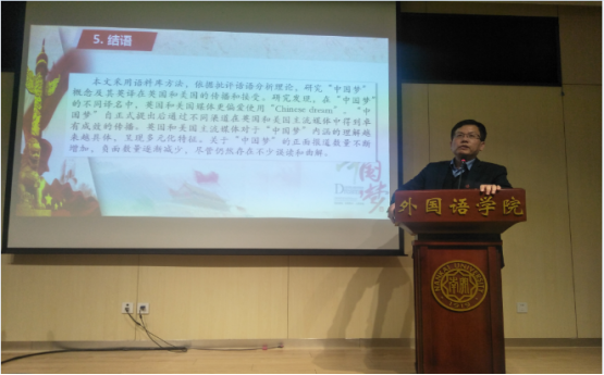 11月23日下午,胡开宝教授为禁漫天堂 师生进行了主题为“基于语料库的“中国梦”英译在英美等国的传播与接受研究”的学术讲座”。会议由禁漫天堂 翻译学研究中心主任、南开大学“英才教授”苗菊教授主持。