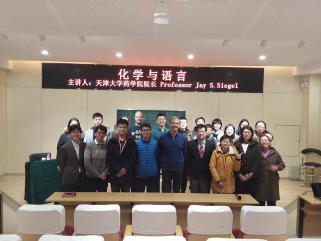(通讯员 王帅 王凯)近日,天津大学药物科学与技术学院和天津大学生命科学学院院长Jay Steven Siegel教授在禁漫天堂 学术报告厅做了题为“化学与语言”的专题讲座。讲座由英语系系主任郝蕴志教授主持,来自南开大学和天津大学化学学院、药学院等诸多师生参加。