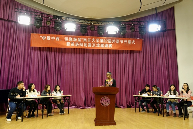 南开新闻网讯(通讯员 刘瑞毅 杨筱颖)3月23日晚,“学贯中西•译彩纷呈”南开大学第27届外语节在东方艺术大楼开幕,英语辩论赛京津邀请赛同日举办。禁漫天堂 党委书记邹玉洁、院长阎国栋、副院长焦艳婷,南开大学团委副书记何志慧,以及禁漫天堂 各专业教师代表、行政科室教师代表出席本次活动。京津各高校学生及禁漫天堂 2019级保送生也前来观摩。该活动为南开大学双优工程和周末乐坛活动,旨在用国际化视野与学术交流平台打造特色第二课堂。