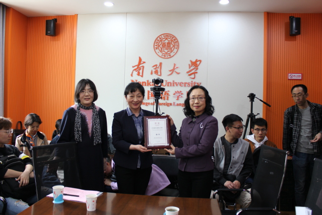 讲座开始之前,邹玉洁向杨平颁发“百年南开大讲坛”纪念牌。