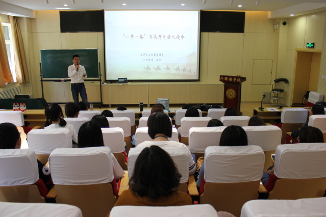 比赛中,英语系张晨以英语语音为主题,分析社会主义核心价值观的语音,与师生展开深入互动;俄语系宋胤男从俄罗斯文学的全人类特点出发,分析了中俄两个文化中的共同点,引出我国提出的“人类命运共同体”的概念及一带一路的倡议,并介绍了中俄文化交往的现状与前景;西班牙语专业龚韵洁从无人称动词haber的用法入手,选取《习近平谈治国理政》中的相关表达为例,结合习近平总书记视察南开大学的重要讲话精神,在教授语法知识的同时,鼓励同学们牢记嘱托,脚踏实地,努力学习;日语系郑琳从“怎样翻译中国特色社会主义相关表达”切入,讲授了中翻日时照搬汉字词的风险以及怎样才能让译文更加自然易懂;意大利语专业石豆以习近平总书记提出“一带一路”倡议及习近平总书记访问意大利的重要讲话为主题,提出南开外语人应当顺势而为,把小我融入大我,助力“一带一路”建设。