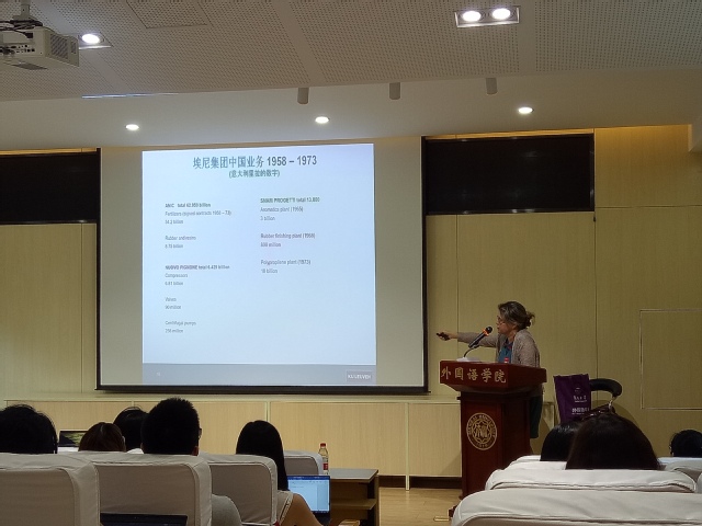 受“美苏冷战”的影响,50年代意大利与中国的贸易往来是从非政府组织的接触开始的。张教授从企业与企业家的角度入手,以意大利国有企业埃尼(Eni)集团及其二战后的首任总裁恩里柯·马戴伊(Enrico Mattei)为重点案例,对50年代的中意经贸活动进行了具体的讲解。通过对当时的商务合同、会议记录、新闻报道等一手档案资料的分析,教授指出,埃尼集团当时与中国接触的程度是远远领先于意大利政府的。这为埃尼集团带来了巨大的商机、一定程度上促进了70年代中意关系的正常化,也在当时意大利国内引发了争议,对意大利与美国的关系造成了一定的影响。