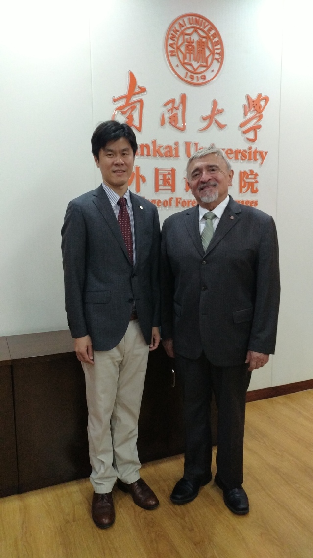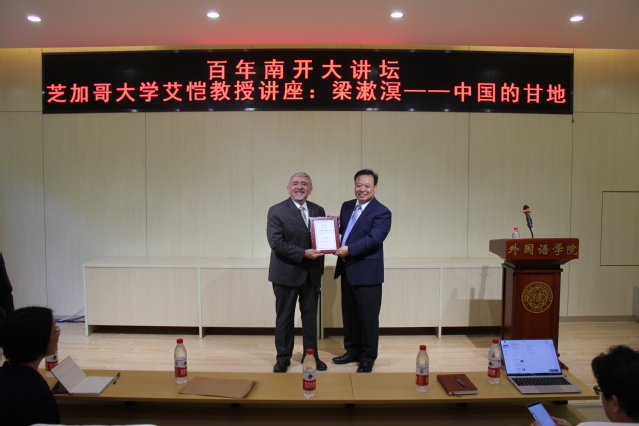 据悉,本次讲座是“百年南开大讲坛”的系列讲座之一。阎国栋院长为艾恺教授颁发“百年南开大讲坛主讲人”纪念牌。在讲座前后,阎国栋院长、王凯副院长分别与艾恺教授亲切会谈,意大利语专业负责人杨琳参加会谈。
