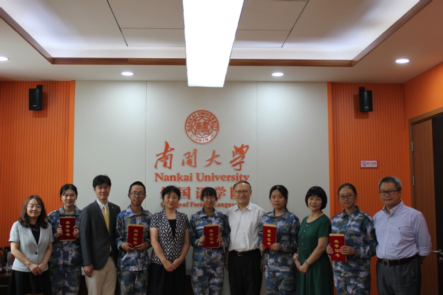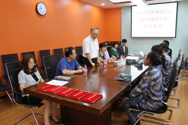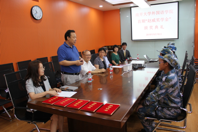 学院党委书记邹玉洁、院长阎国栋、副院长马红旗、王凯、相羽及日语系韩立红系主任和五名获奖本科生同学等出席。阎国栋院长对赵威校友设立奖学金、奖掖优秀日语本科学生表示衷心感谢!获得奖学金的学生代表发言,表示要在今后的学习和生活中以学长为榜样,以“校训”严格要求自己,德智体美全面发展,做一名真正的“南开人”!