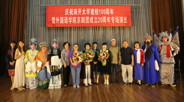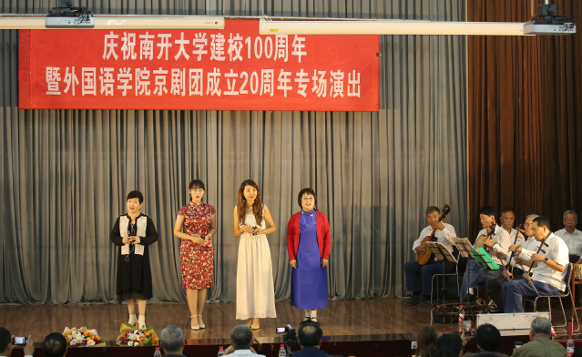 邹玉洁发表了热情洋溢的致词。她回顾了京剧团成立20年的辉煌历程,培养锻炼了一代又一代南开京剧爱好者,大大传承了中国传统文化京剧艺术。在教育部、天津市、学校和学院支持和全体师生演员努力下,京剧团先后在校内外演出交流百余场,多次获得全国高校演出大奖,并出访日本、中国香港、中国台湾等国家和地区演出,名声远播。用英语、日语唱京剧是南开外院京剧团的创举,也是中国高校第一个赴国外交流演出的学生团体。戏剧演出是百年南开的优良传统,在新时代就是要进一步提高学生素养、陶冶情操、积极开展学生的第二课堂实践,增强文化自信!让京剧艺术走进校门、走出津门、走向世界!