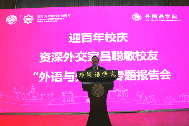 值南开大学建校百年、外语学科创建百年之际,吕聪敏勉励南开外语学子,要珍惜在南开园度过的大好时光,运用外语知识和技能,在报效祖国、服务社会、服务人民的事业中奋斗终生。