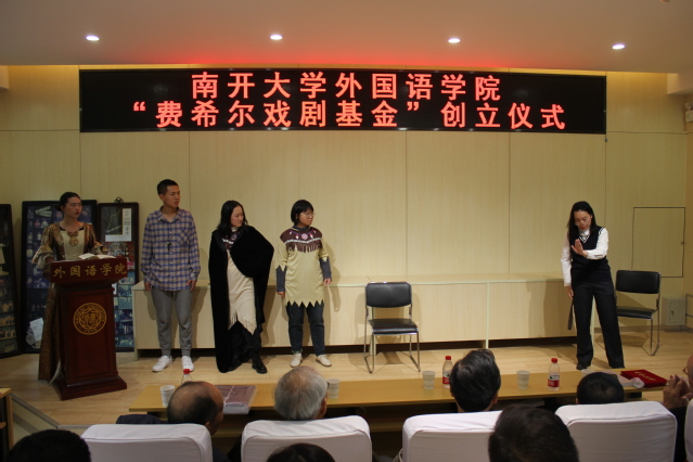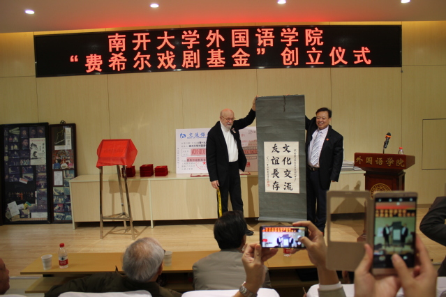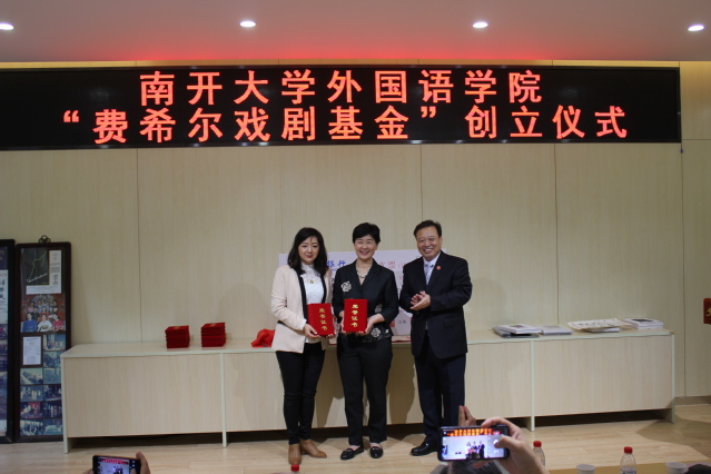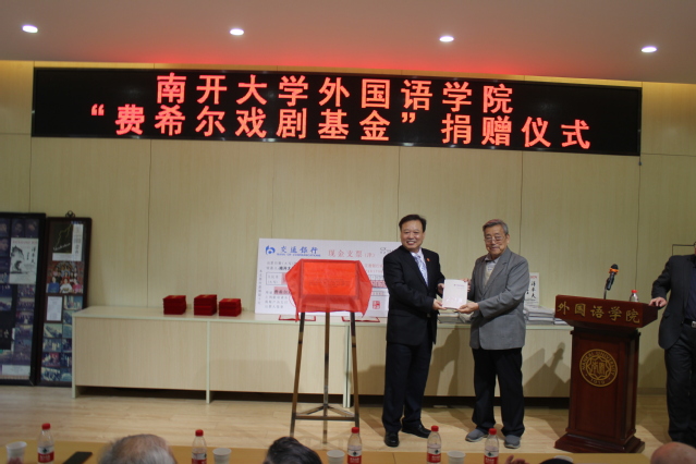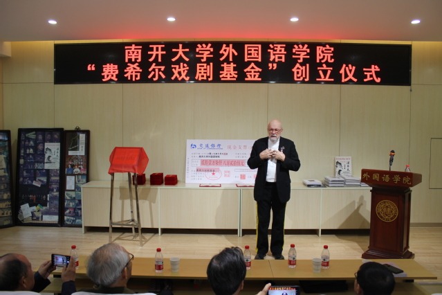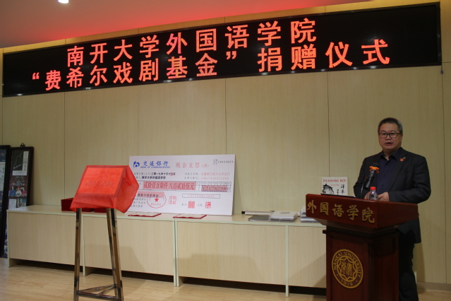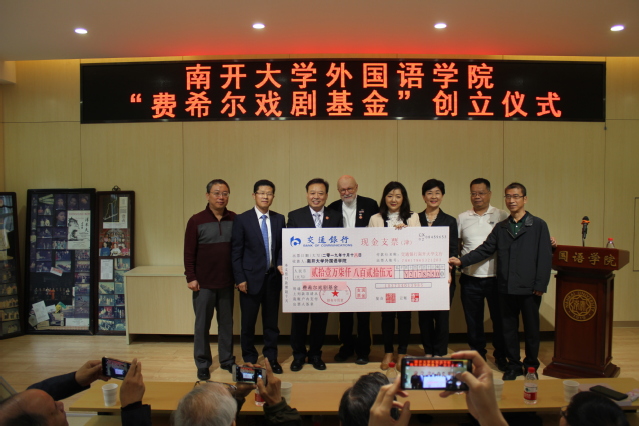 “费希尔戏剧基金”由蔡本红等当年参加外文戏剧表演的学生发起。设立仪式中,阎国栋和费希尔为基金揭牌,校友代表向学院递交了捐款支票217825元,阎国栋为基金捐赠者颁发捐赠证书。阎国栋在致辞中提出,戏剧是丰富和补充外语教学的重要环节,是学科发展的重要手段。继费希尔先生开创海外表演中国戏剧之后,南开大学日语系、俄语系学生剧团相继在国内外演出,这是中华文化“走出去”的一大创举。“费希尔戏剧基金”的创立具有重要意义,希望禁漫天堂 师生共同努力,续写南开享誉四海的戏剧传统。他赞扬了校友们心系外院发展和反哺母校的精神,希望发扬学生剧团的号召力、影响力和凝聚力,延续禁漫天堂 的戏剧表演血脉。
