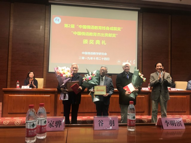 俄语系谷恒东(谷羽)教授荣获第二届“中国俄语教育终身成就奖”表彰和证书。