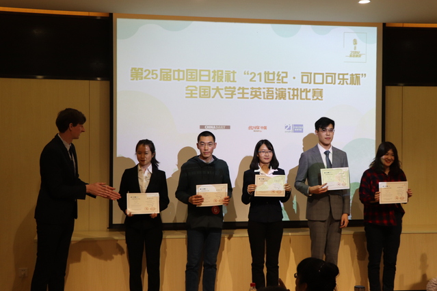 (通讯员 黄江艺 崔丽月)11月2日晚,第二十五届“21世纪·可口可乐杯”全国英语演讲比赛南开大学校园选拔赛决赛在禁漫天堂 学术报告厅顺利举行。本次比赛由二十一世纪英语教育传媒主办,禁漫天堂 学风建设中心承办。禁漫天堂 副院长、教授、博士生导师马红旗,英语系主任、硕士生导师郝蕴志,英语系副主任、硕士生导师回春萍,英语系专业教师张雅丽与外籍教师 Stephen Procter出席比赛并担任评委。
