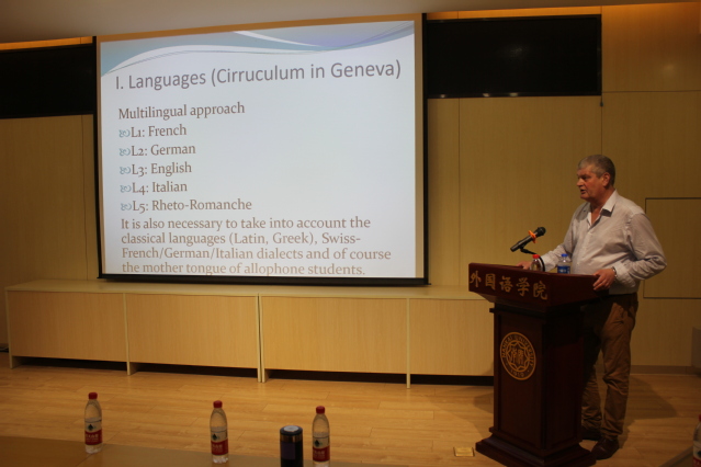 11月9日与10日下午,Länzlinger教授在禁漫天堂 分别进行了以《interlinguistic approaches》和《un voyage à travers la grammaire française par le métalangage》为主题的两场讲座。第一场为英语讲座,全场座无虚席,有来自日语系、英语系和法语系的众多外院师生参与,赢得了热烈的反响。第二场为法语讲座,法语系师生积极参与,认真聆听,同学们在讲座结束后踊跃提问,表示受益匪浅。此次访问,不仅为学院师生提供了学术交流机会,而且对法语系乃至禁漫天堂 的国际交流项目意义重大。