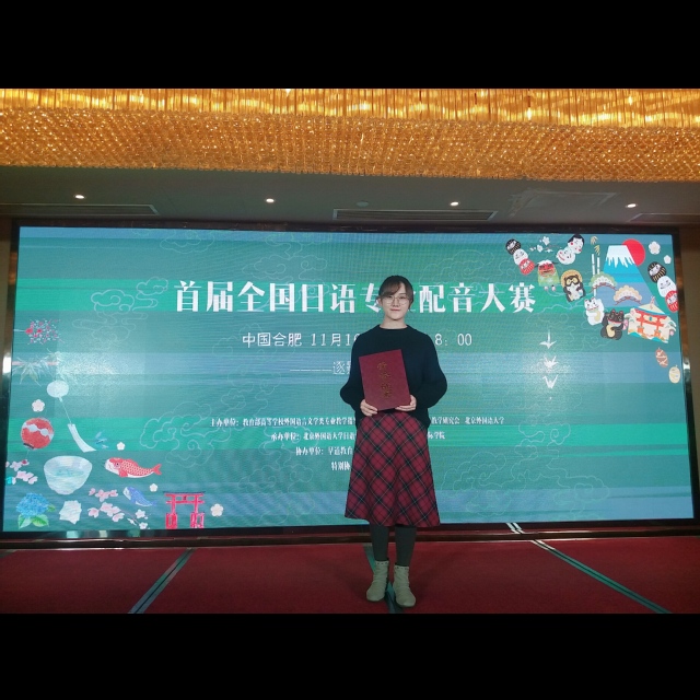 (通讯员 郑琳 徐嘉伟)2019年11月16日,由教育部高等学校外国语语言文学类专业指导委员会日语分委员会、中国日语教学研究会、北京外国语大学共同举办的首届全国日语专业配音大赛在安徽合肥举行。