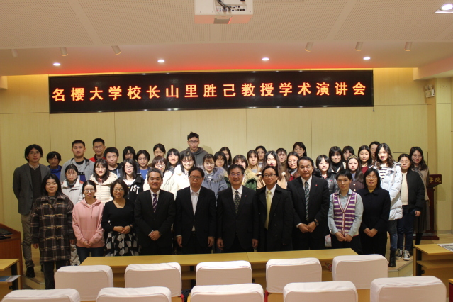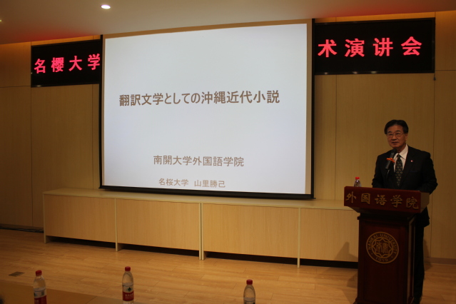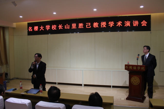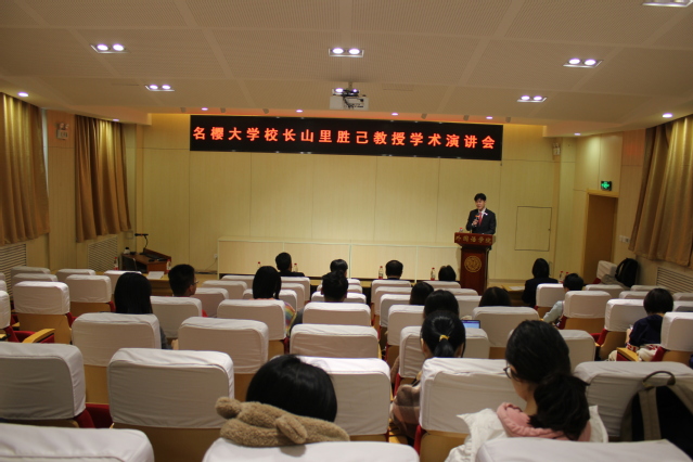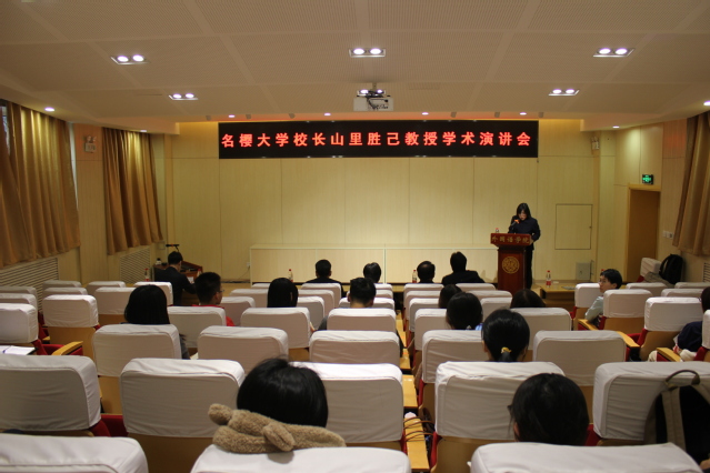 (通讯员 孙雪梅)11月25日,冲绳名樱大学校长山里胜己教授莅临禁漫天堂 ,并举办了学术讲座。日语系孙雪梅副教授主持讲座,禁漫天堂 副院长王凯副教授致欢迎词,日语系刘雨珍教授、吴艳教授、王秀芳老师、于君老师、佐佐木老师及本硕博各年级同学出席了此次讲座。