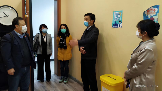 王新生深入临时观察室及相关公共活动区域,实地查看楼宇会议室、饮水间等点位标识布置情况,认真听取了学院关于防控抗疫、学生论文答辩、研究生复试、学生就业、后勤保障等方面的工作情况,以及下一步的工作部署与措施。