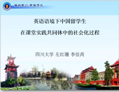 四川大学左红珊博士汇报了她与李佳芮合作研究的项目进展,题目是“英语语境下中国留学生的课堂学习—实践共同体中的社会化过程”。左老师对本研究的理论基础和核心概念进行了清晰的阐述,深入剖析了一位语言社会化失败的个案和一位成功的个案,带给与会者一种全新的视角。