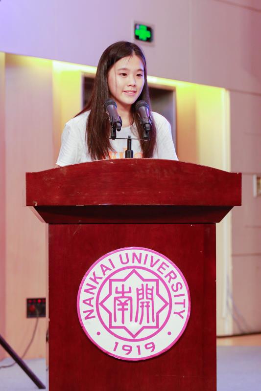 研究生会执行主席、优秀公能朋辈导师、2019级英语语言文学专业硕士郑锡然代表老生发言,她从自己的经历入手,强调学习南开精神、感受语言魅力、积极探索实践,强调“Language is power”。倡议2020级新生秉持“公能”意志,感受外语力量,突破知识边界,做复合型外语人才,做南开精神传承者。