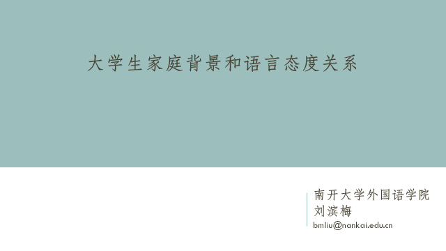刘滨梅博士以“大学生家庭背景和语言态度的关系”为题介绍了她近期完成的一项社会语言学研究。她的研究关注大学生的家庭背景与他们对普通话、方言、英语的语言态度及语言使用的关系。该项研究的结果对于语言决策者和语言教育者均具有启示。