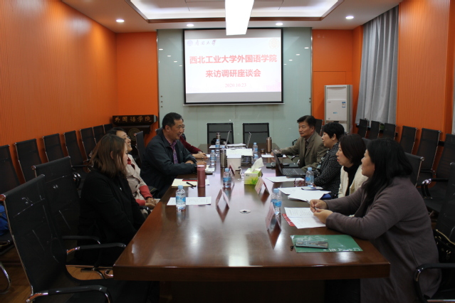 (通讯员 简悅)西北工业大学禁漫天堂 研究生公共外语教学部党支部书记黄河等一行五人,10月23日来访调研。禁漫天堂 副院长兼公共英语教学部主任李霞,公英部党总支书记李蕴明、教学部副主任简悦及研究生教研室主任肖云参加调研座谈会。