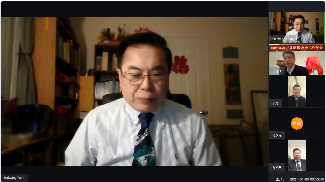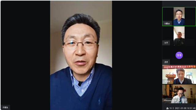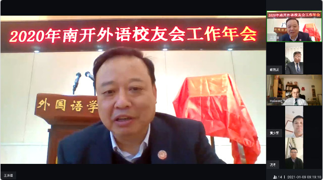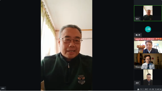 南开外语校友会会长赵威做外语校友会2020年工作总结报告,副会长况冬做外语校友会2020年财务工作报告,副秘书长黄少荣做外语校友会2021年工作计划报告,与会校友代表审议并通过以上3个报告。