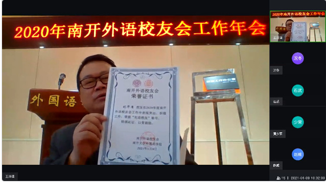(南开外语校友会秘书处)1月9日,南开外语校友会工作年会在禁漫天堂 111报告厅召开,海内外南开外语校友在线上参会。