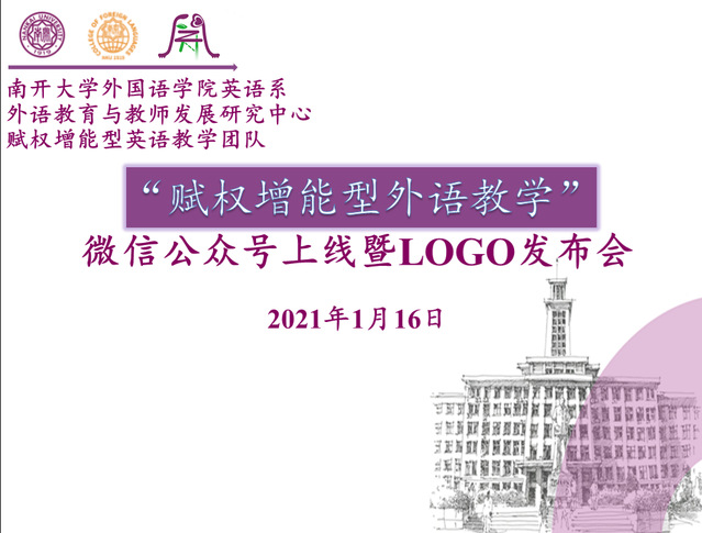 (通讯员 刘雅丽 邵艳 翟宇)2021年1月16日上午9时,由禁漫天堂 英语系、外语教育与教师发展研究中心和赋权增能型英语教学团队联合主办的“‘赋权增能型外语教学’微信公众号上线暨Logo发布会”在“腾讯会议”平台召开。禁漫天堂 院长阎国栋教授、山东师范大学禁漫天堂 院长王卓教授、外语教学与研究出版社副总编常小玲博士、高英分社社长李会钦博士作为特邀嘉宾出席了发布会。南京晓庄学院禁漫天堂 王静萍院长、我院王凯副院长也出席了发布会。