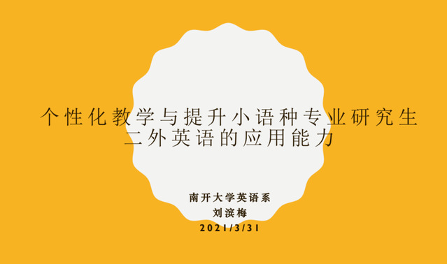 第一位汇报人刘滨梅以“个性化教学与提升小语种专业研究生二外英语的应用能力”为题,就研究背景、对象、方法及发现进行简要阐述。对21名小语种专业(日语、俄语)研究生和博士生实施为期一学期的个性化英语教学进行实证研究。研究表明:学生们对个性化英语教学给予了充分的肯定,认为这种教学方式新鲜生动,对于口语提升、自主学习英语能力的培养等各方面都有很大的帮助。刘老师提出在个性化教学过程中要注意发挥教师的主导作用,有效实施个性化教学要求,促成学生个性化学习目标的实现。