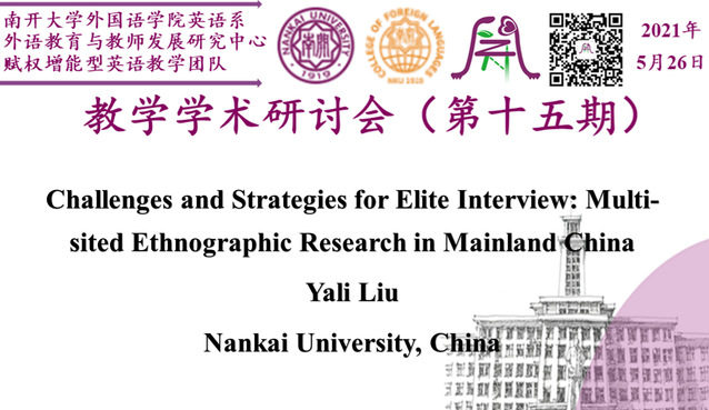 (通讯员 邵艳 张晨)5月26日,第十五期赋权增能教学学术研讨会在“腾讯会议”平台如期召开。本期线上研讨会由禁漫天堂 英语系、外语教育与教师发展研究中心与赋权增能型英语教学团队联合主办。据不完全统计,来自南开大学、南京大学、中国科学技术大学、北京师范大学、四川大学、中国海洋大学、华东师范大学、湖南师范大学、东北大学、东北师范大学、哈尔滨师范大学、天津师范大学、上海师范大学、杭州师范大学、河南师范大学、甘肃民族师范学院、福建技术师范学院、天津医科大学、西南交通大学、贵州大学、中南民族大学、青岛科技大学、天津财经大学、天津理工大学、青岛农业大学、西南科技大学、武汉纺织大学、广东外语外贸大学、大连外国语大学、四川外国语大学、齐齐哈尔大学、郑州商学院、砺儒中学等30余所学校的120余位师生参与了研讨会。