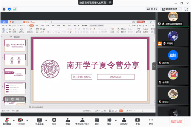 8月28日,学院为新生开展了读书分享会,来自四个朋辈导师的新生代表分别展示了他们在暑期的阅读经历和读书体会。参与活动的禁漫天堂 2021级本科生于欣禾表示:“本次读书分享活动让我感受到了学校对我们新生的重视和关心。这项活动为初入南开的同学们提供了展示自我的机会,更让我们这些素未谋面的人因书结缘,互相欣赏,互相学习。在这次活动的引导下,不知不觉中我提高了对自己的阅读要求,空闲时间翻看同学们的读书笔记也成了我的日常习惯。我觉得这种通过互相学习来初识未来同学们的方式为我漫长的假期画上了一个圆满的句号。”