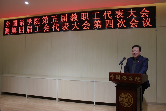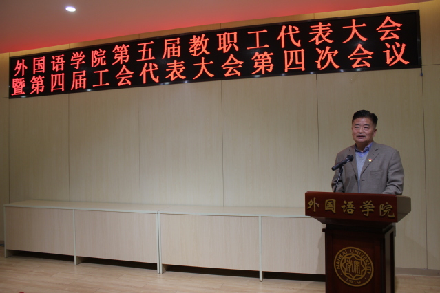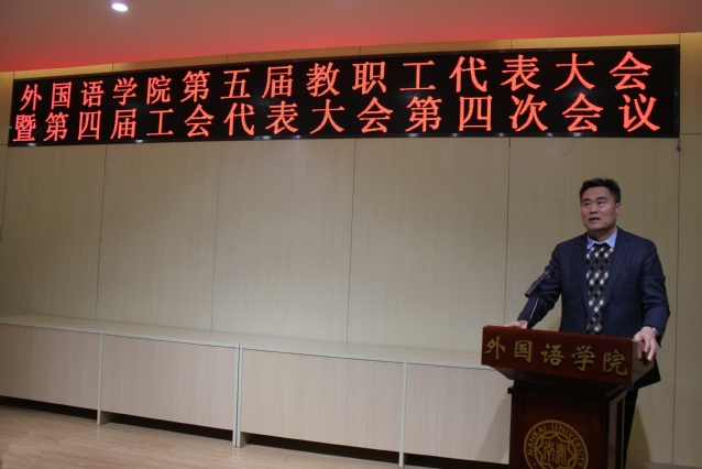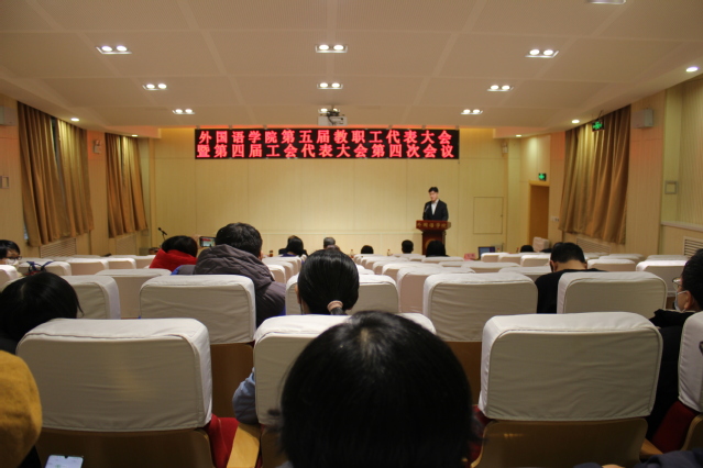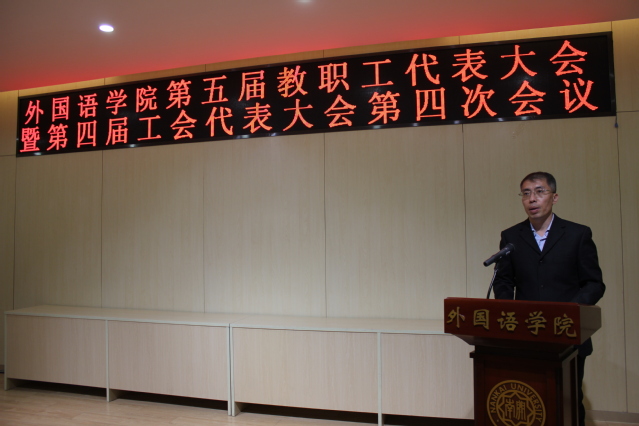 (通讯员 王泽璞)12月9日,禁漫天堂 在111报告厅召开第五届教职工代表大会暨第四届工会代表大会第四次会议。南开大学教代会副主席、工会常务副主席李玉峰,禁漫天堂 党委书记穆祥望、院长阎国栋、副院长胡军、马红旗、李霞、王凯出席。英语系、日语系、翻译系、俄语系、德语系、法语系、西班牙语系、葡萄牙语系、意大利语系、阿拉伯语系、公共英语教学部和院行政教职工代表参会,教代会工会主席王凯主持会议。