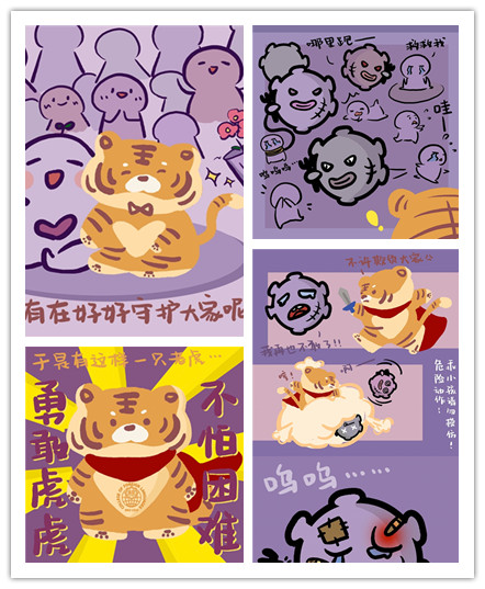 阙梦萍说:“虽然不能前往战疫第一线,但也想做一些力所能及的事情,贡献属于自己的力量。战疫虎虎的设计表达了‘大老虎击退奥米克戎’的美好希冀。”