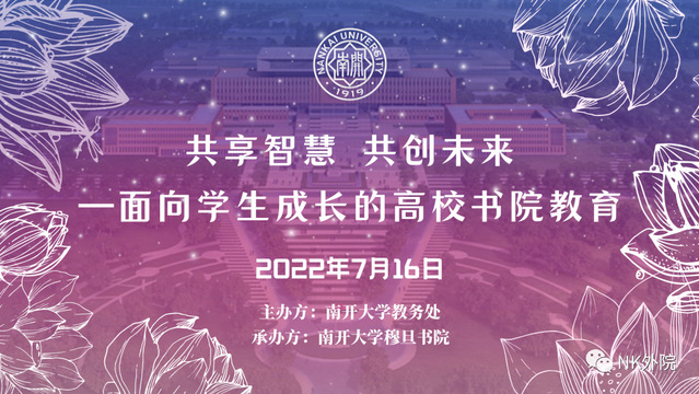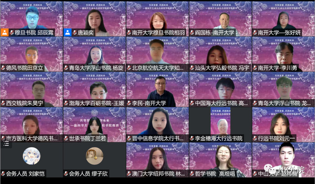 (通讯员 王雪力 谢梓辰 崔丽月)7月16日上午,由南开大学教务处主办、南开大学穆旦书院承办的高校现代书院学生论坛在线上成功召开。本次论坛以“共享智慧,共创未来——面向学生成长的高校书院教育”为主题,来自澳门大学、复旦大学、北京航空航天大学、西安交通大学、南方医科大学、中国海洋大学、青岛大学、中山大学、汕头大学、湖南师范大学、陕西师范大学、北京中医药大学、渤海大学、晋中信息学院等数十所高校的书院学生代表齐聚云端,共话书院教育。450余名师生在线听取报告并参与交流。