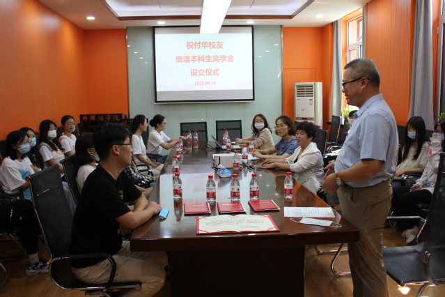 穆祥望表示,祝付华校友设立“俄语本科生奖学金”体现了校友关爱母校、支持学院发展的反哺之情,她鼓励俄语系本科生以祝付华校友为榜样,以己所学砥砺报国之行。