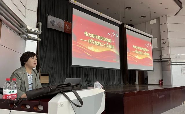 穆祥望表示,中国共产党第二十次全国代表大会是在全党全国各族人民迈上全面建设社会主义现代化国家新征程、向第二个百年奋斗目标进军的关键时刻召开的一次十分重要的大会。穆祥望从大会主题、三个务必、十年来的三个大事等关键词对二十大报告进行了细致地讲解,从经济、政治、文化、民生等方面结合生动的案例展现了在习近平新时代中国特色社会主义思想的引领下我国在新时代取得的新作为和新成就。