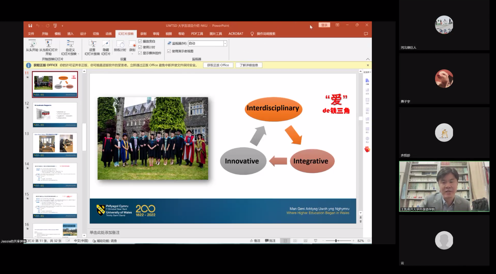 副院长王凯副教授出席南开-英国威尔士三一圣大卫大学双学位项目线上宣讲会并致辞