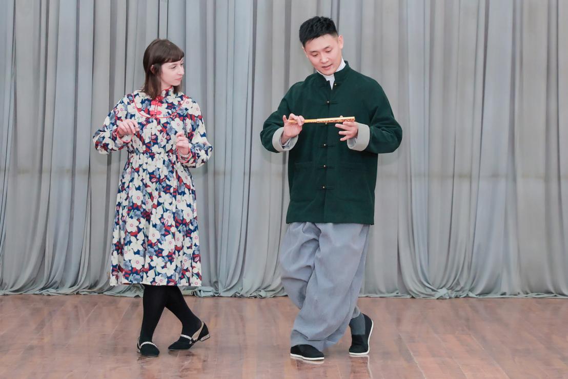 在活动的最后凌珂老师对几位观众提出的问题进行了认真详细的解答,之后分别为意大利语籍教师乐小悦老师和俄罗斯籍教师谢尔盖讲解示范了京剧旦角与净角的简单身段。