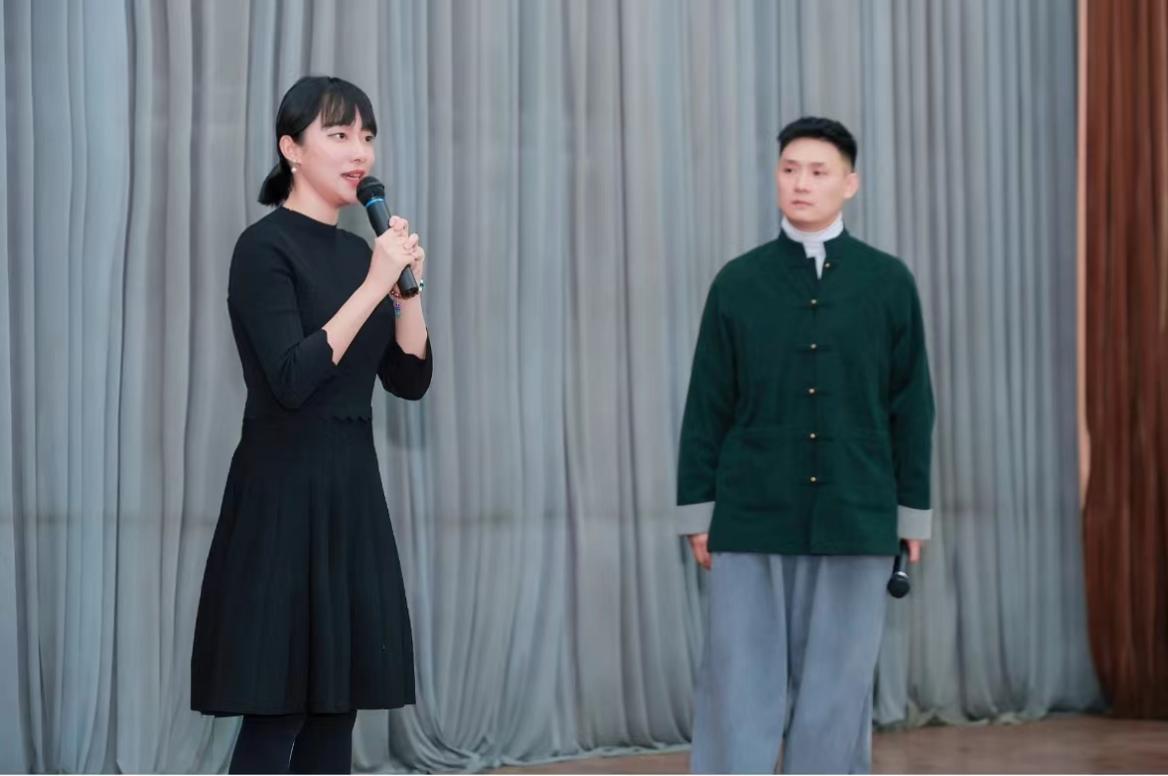 聘任结束后,凌珂老师开始讲座,主要讲述了京剧的韵白、三级韵,以祢衡、李克用为例,讲解示范怎样通过身段、念白、功法的细微区别塑造出不同的人物形象,随后又讲述了传统戏与现代戏的区别与联系,现代戏应保持怎样的精神内核等话题。凌珂老师诙谐幽默又干货满满,同时还展示了许多京剧唱段与念白,让南开师生们,既过足了戏瘾又学到不少知识。