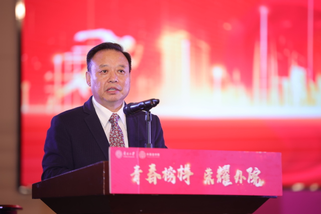 荣休教师代表刘萍老师深情回顾了自己近三十年执教的经历,在温暖的大集体中成长成熟直至光荣退休。她表示,虽然伤感于过去迎来又送走了一届又一届学生,而如今自己也离开了教学岗位,但未来会继续关注学院的发展,希望外院能够越来越好、再铸辉煌,希望外院学子可以增长本领、成长成才。
