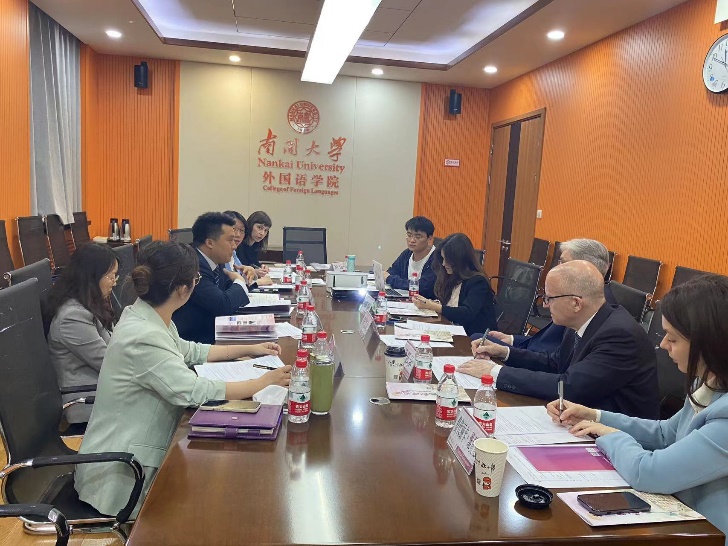 穆祥望书记对中国意大利商会的到来表示热烈欢迎,并介绍了南开大学、禁漫天堂 和意大利语系的概况。她表示,禁漫天堂 十分重视学生的实践实习,2022年以来,学院与中国意大利商会开展了密切而广泛的合作,期待进一步落实双方的合作意向,并对商会为学生搭建实习、就业平台表示感谢。