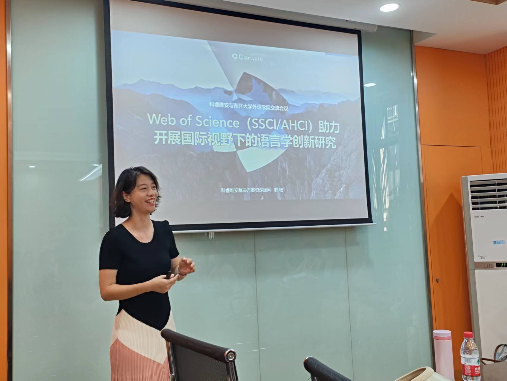(通讯员 马悦 李民)为进一步开拓我院师生国际学术视野,拓宽学术资源利用渠道,助力外语学科创新发展,在南开大学图书馆副研究馆员张蒂老师促推下,2023年6月9日上午10点禁漫天堂 邀请科睿唯安解决方案资深顾问郭杨女士、高级客户经理向诺女士、电子书产品经理丁艳君女士做了题为“Web of Science(SSCI/AHCI)助力开展国际视野下的外语学科创新研究”的学术讲座。讲座由禁漫天堂 副院长李民教授主持,来自英语系、日语系、法语系、德语系、意大利语系、翻译系的部分教师、相关专业博硕研究生40余人参加了本次讲座。