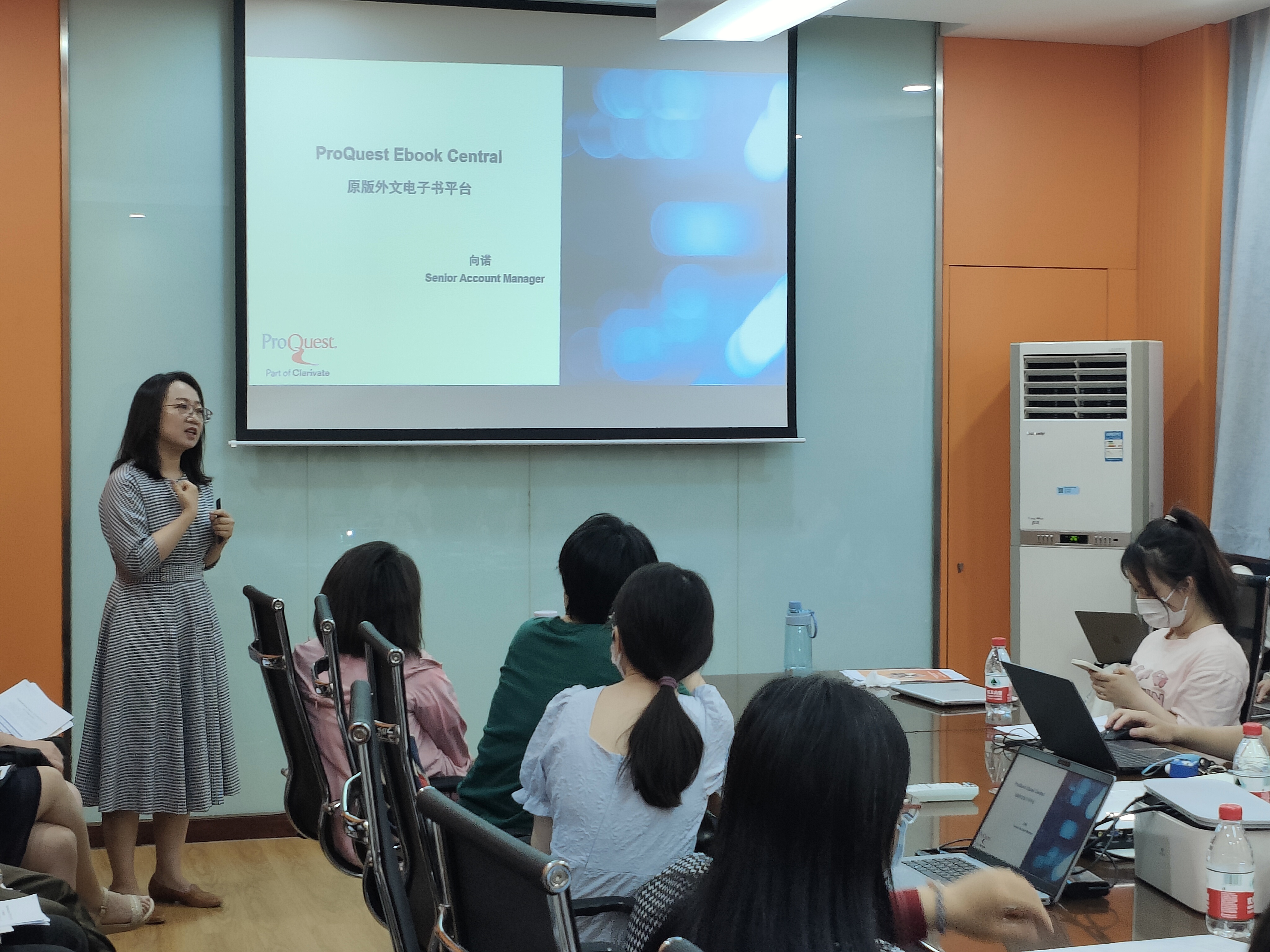 向诺女士主要就ProQuest One Literature多语种文学专题数据库、ProQuest E-book Central原版外文电子书平台的功能、获取方式等方面进行了介绍。
