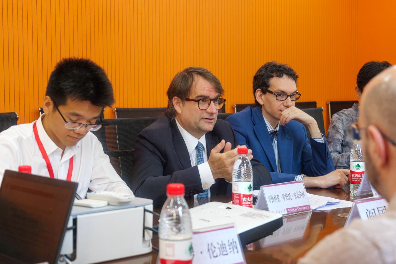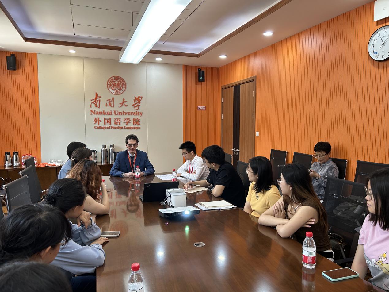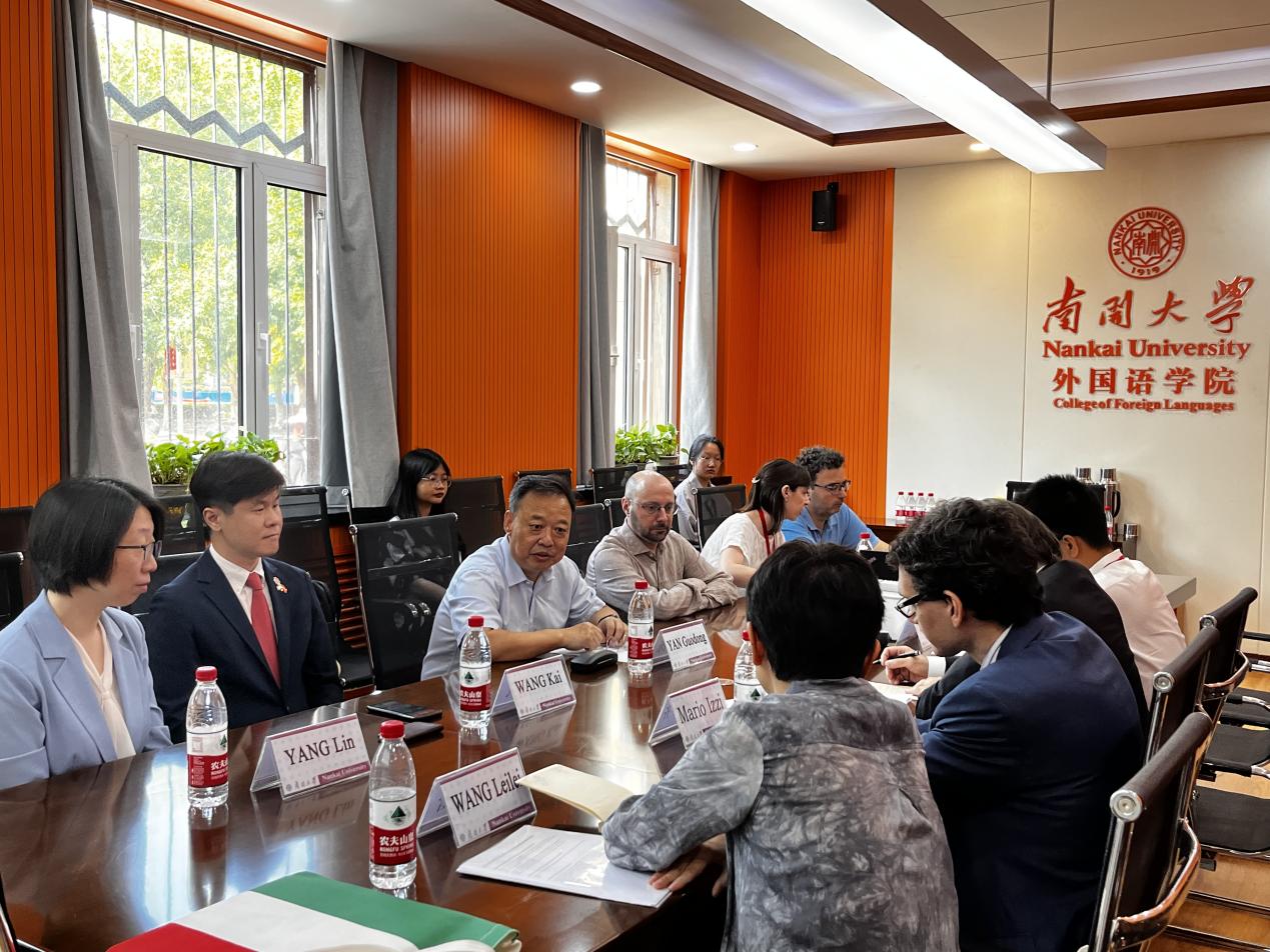 阎国栋院长、王凯副院长、意大利语系主任杨琳、意大利语系教师石豆、乐小悦(Letizia Vallini)、保罗·伦迪纳(Paolo Rendina)和安德烈亚·萨尔托里(Andrea Sartori)副教授出席会谈。