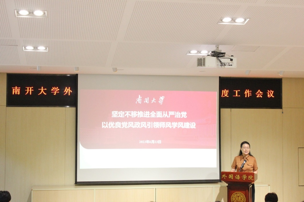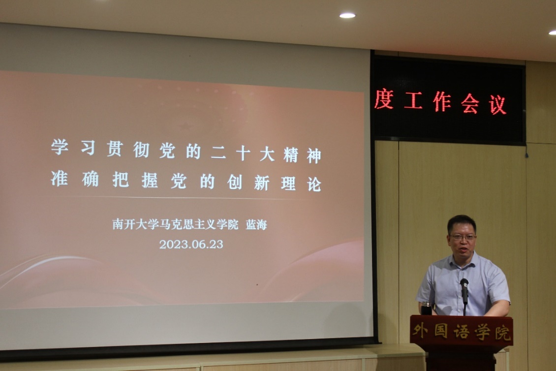 会议安排全体教职工参加了师德师风专题学习及政治理论两场专题学习。校党委副书记、纪委委员赵美蓉以及马克思主义学院教师蓝海分别以《坚定不移推进全面从严治党,以优良党风引领师风学风建设》和《学习贯彻党的二十大精神,准确把握党的创新理论》为题为全院教师教职工做专场报告。