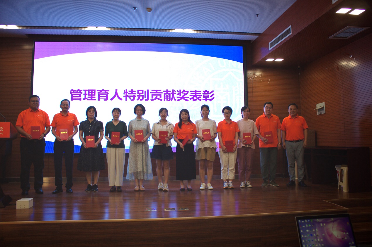 在会议的总结表彰环节,党委书记穆祥望为学院年度优秀共产党员和优秀党务工作者颁发证书,院长阎国栋为培育的学生赴中西部就业及参军入伍的研究生导师、系主任、辅导员颁发管理育人特别贡献奖,并向几位在本学期调整离开学院原有岗位的教师颁发服务育人特别贡献奖。本学年度工作会议圆满结束。